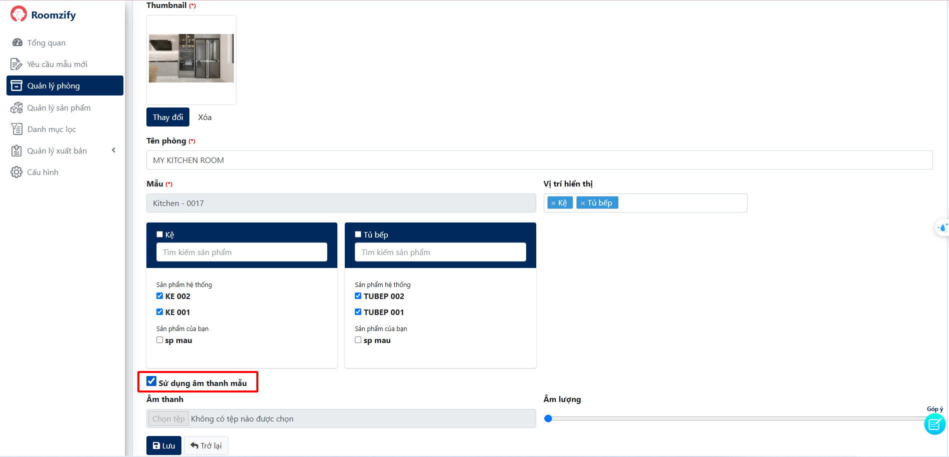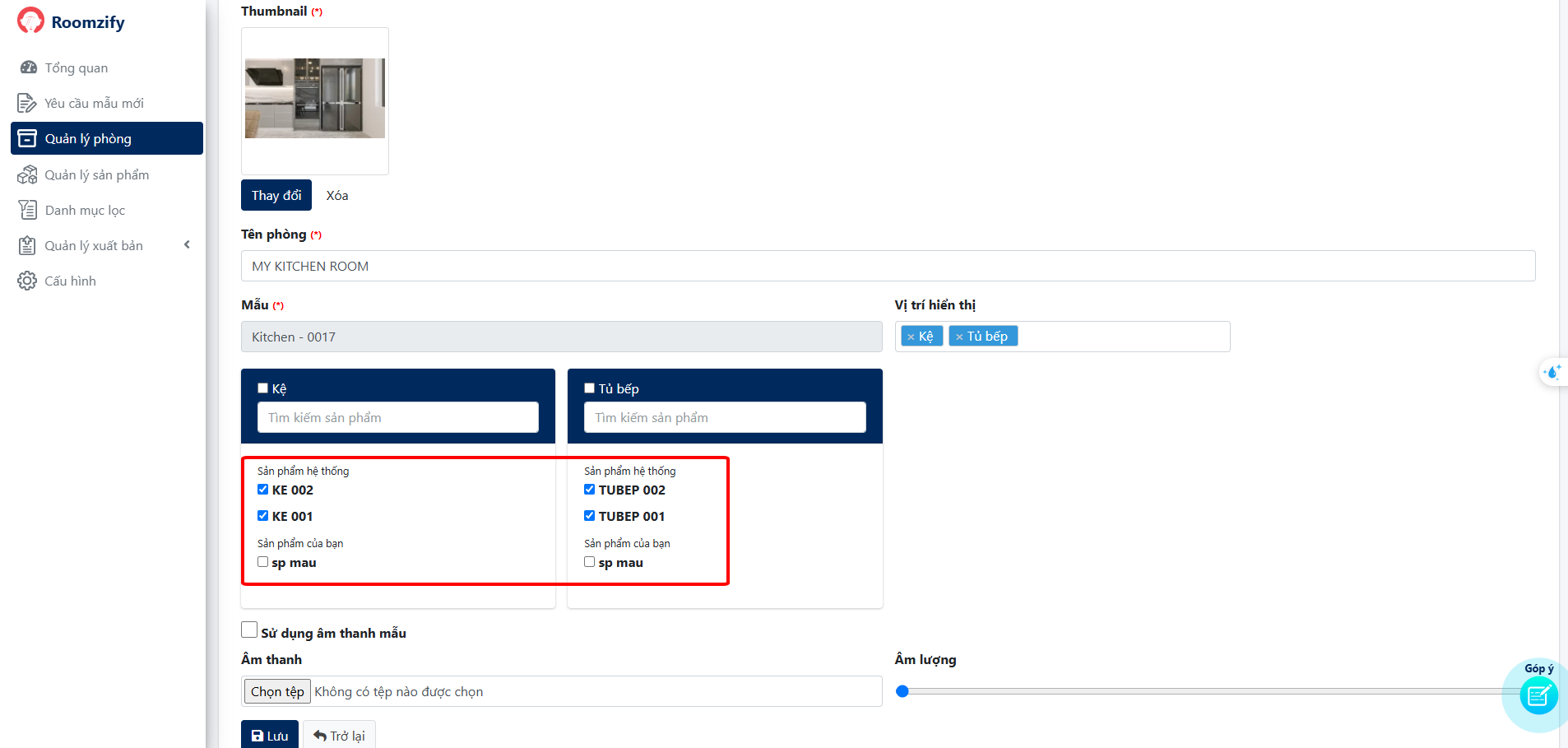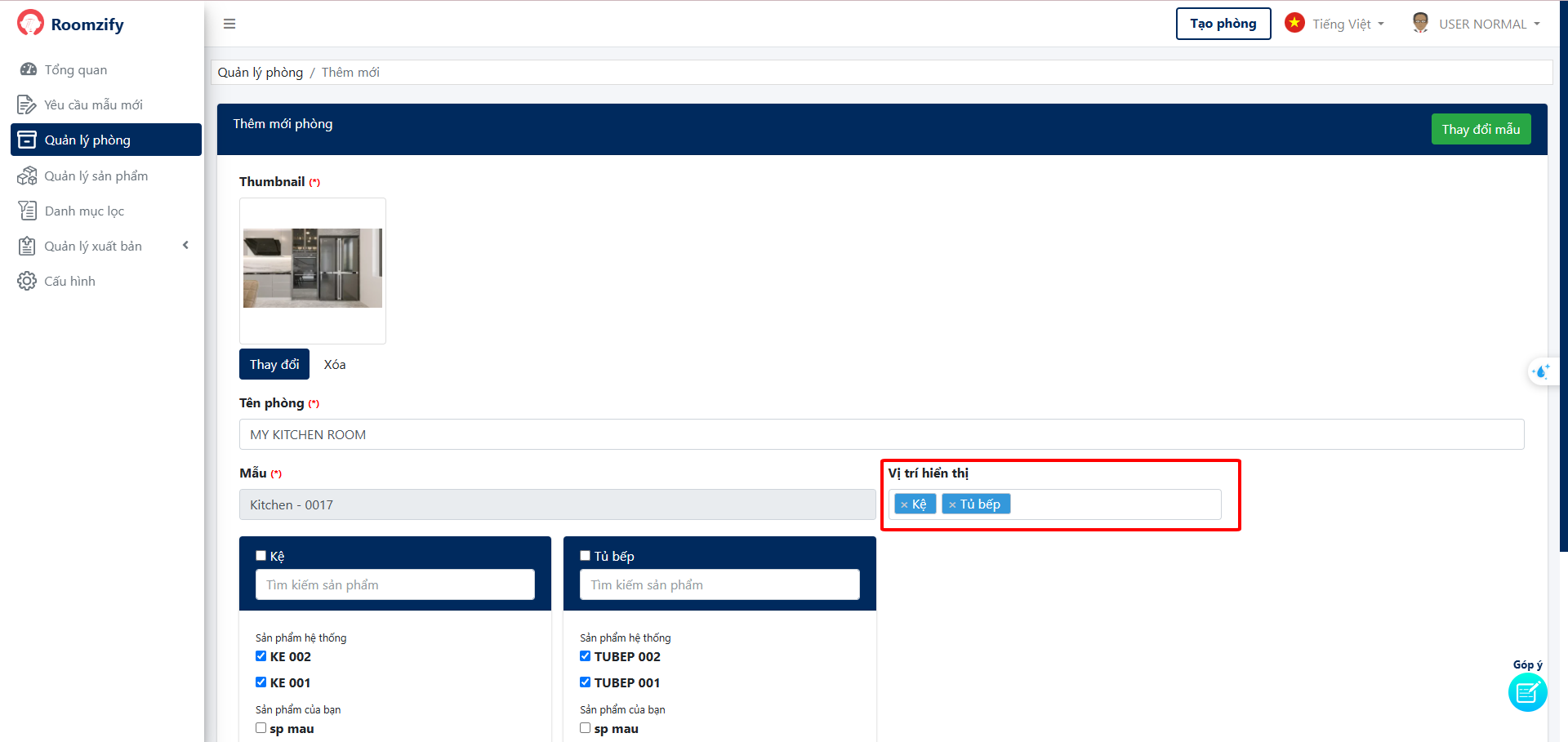 5. Lựa chọn sản phẩm sẽ hiển thị trong phòng
