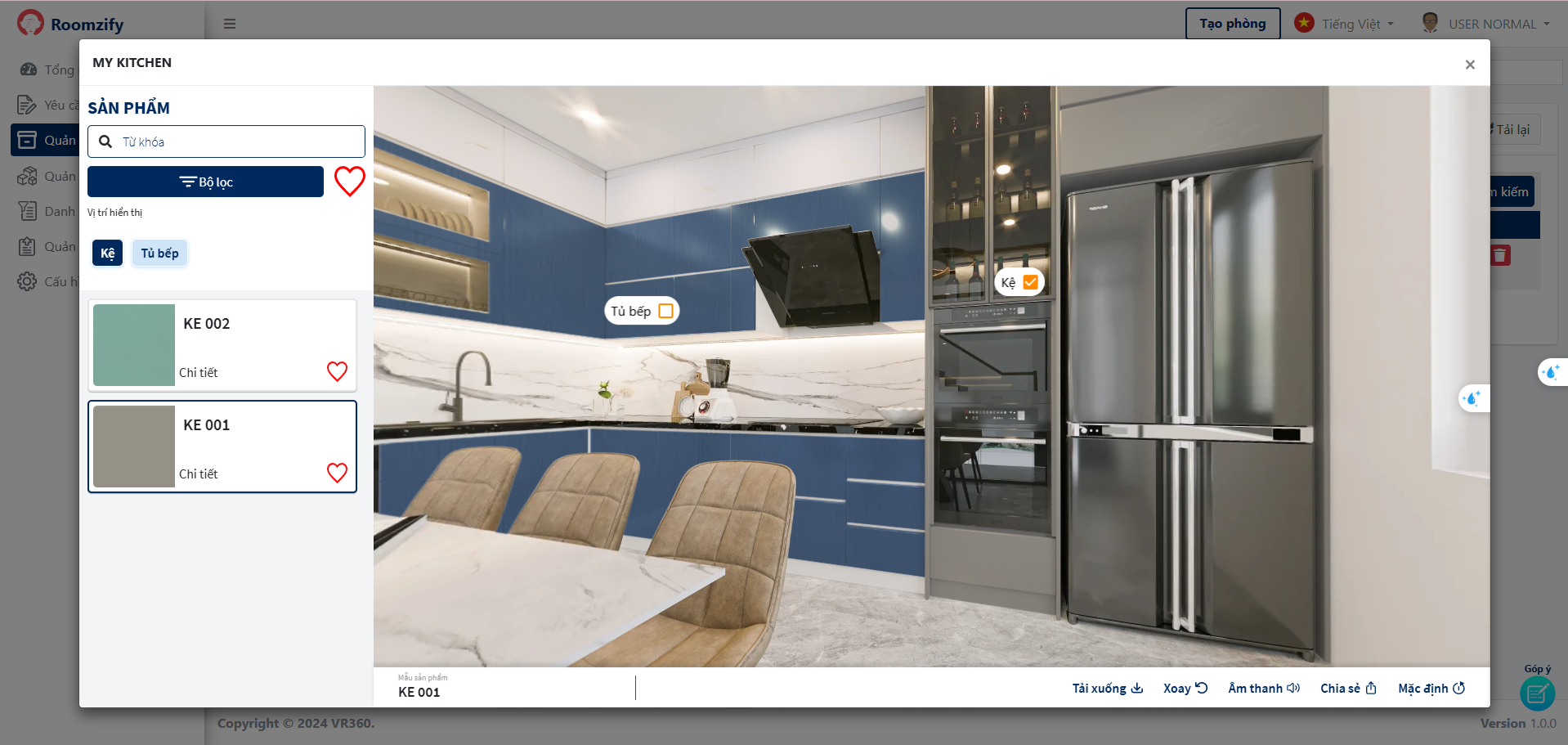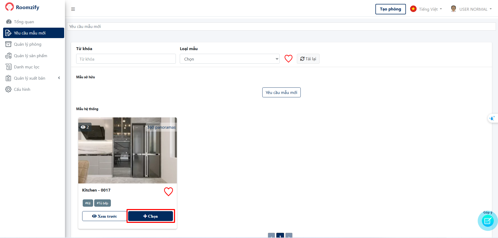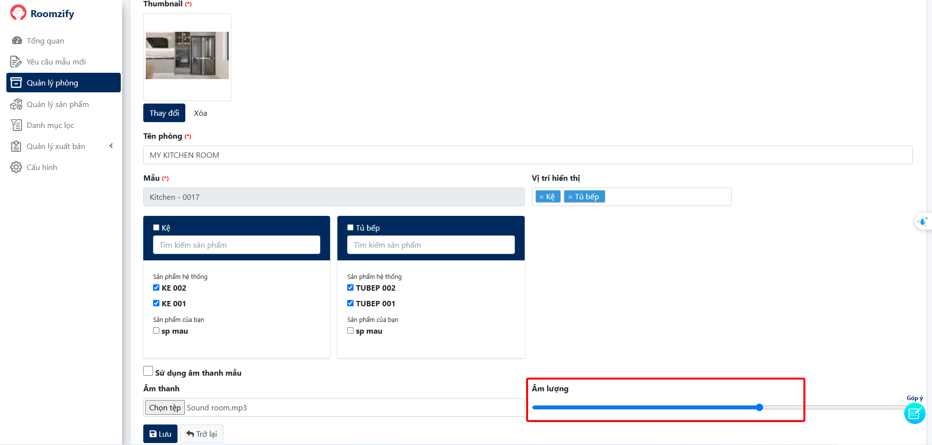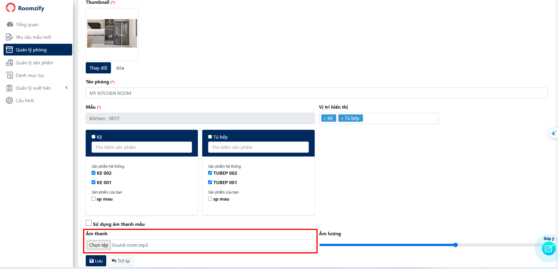 5. Lựa chọn sản phẩm sẽ hiển thị trong phòng
