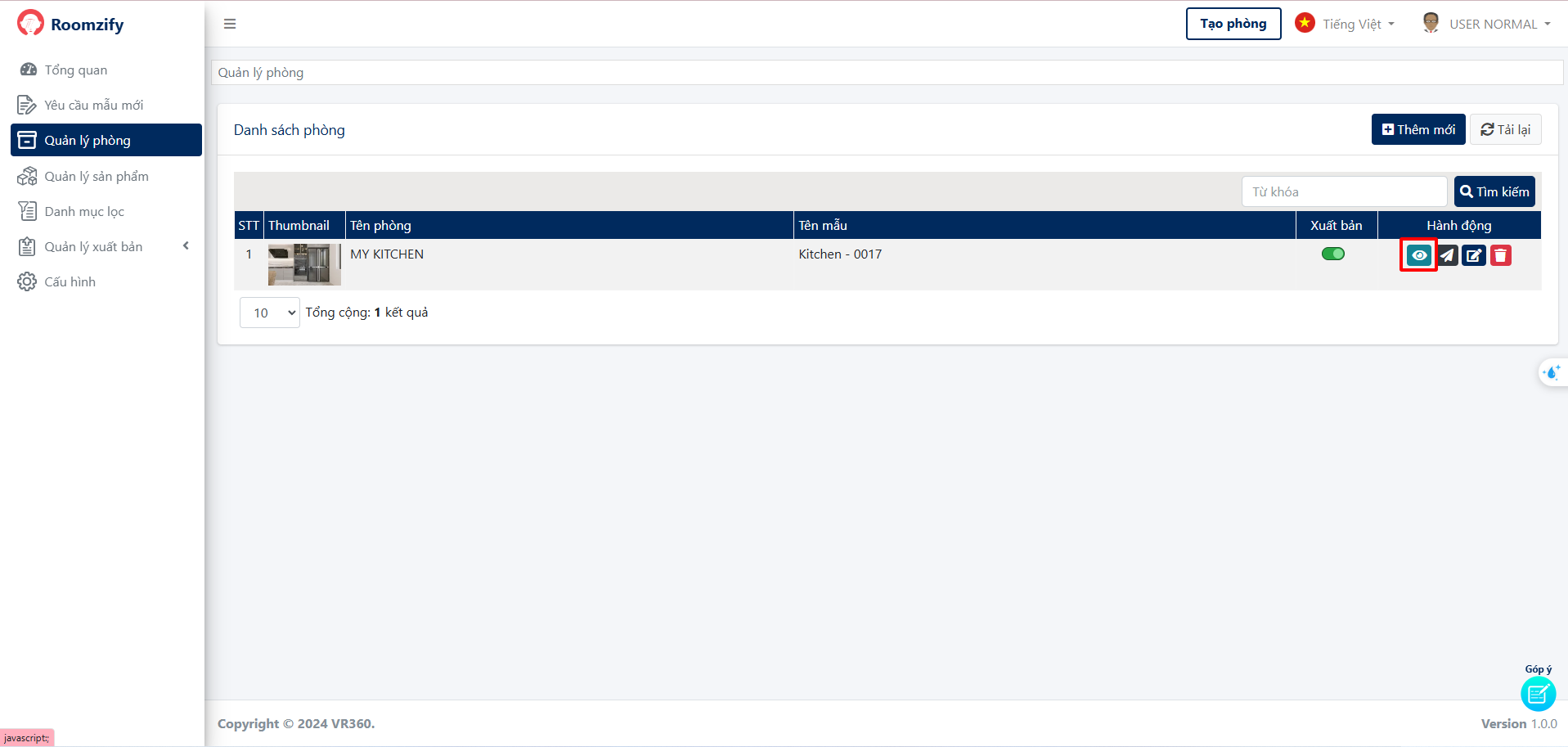 Phòng sau khi tạo sẽ hiển thị ở "Quản lý phòng"